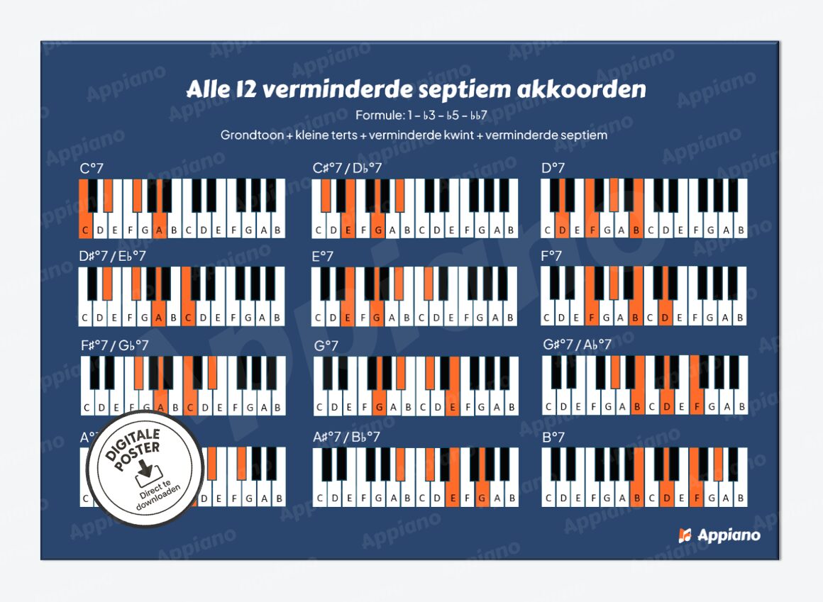 Bestel nu de digitale verminderde Septiemakkoorden-poster (HQ) en heb altijd een overzicht van alle 12 dim7-akkoorden bij de hand – digitaal én printbaar!